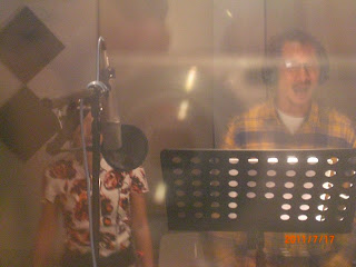 A peek inside the sound engineer's room, The producer Clement Chua and the on-set photographer Junda look on as August and Jeremy listed ever so intently.